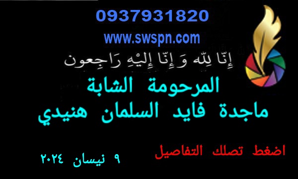 بالرضى والتسليم لقضاء الله وقدره، أهالي قرية المجدل، آل السلمان هنيدي، وأقاربهم في جبل العرب والمهجر ، ينعون إليكم وفاة المرحومة الشابة ماجدة فايد السلمان هنيدي، لها الرحمة ولكم من بعدها حسن البقاء .