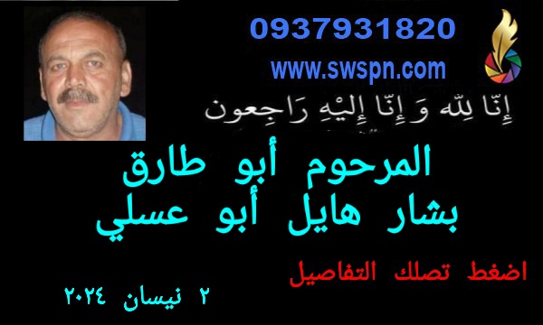 بالرضى والتسليم لقضاء الله وقدره، وآل أبو عسلي رضوان، وأقاربهم في جبل العرب والمهجر، ينعون إليكم وفاة المرحوم أبو طارق بشار هايل أبو عسلي، له الرحمة ولكم من بعده حسن البقاء.