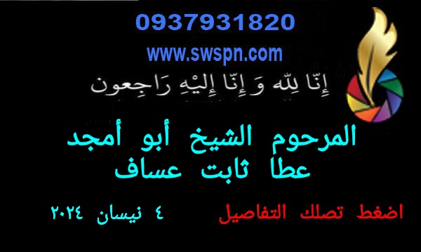 ومن أجل أن تصل خدمة الموقع إلى جميع أبناء المحافظة مقيمين أو مغتربين أرجو من الجميع المشاركة بدعم هذا الموقع من خلال الدخول المباشر واليومي إلى الموقع وذلك بالنقر على الرابط التالي: https:/www.swspn.com: ومتابعته ومشاركته مع الأصدقاء والأقرباء على وسائل التواصل الاجتماعي التي تستخدمونها، كما ترجو إدارة الموقع موافاتنا “بعد عمر طويل للجميع” بنص النعوة إلى الواتس أب الخاص بإدارة الموقع على الرقم /0937931820/ كما نرجو عدم إرسال النعوات إلى المسنجر لأنه غير معتمد لدينا لتلقي النعوات.