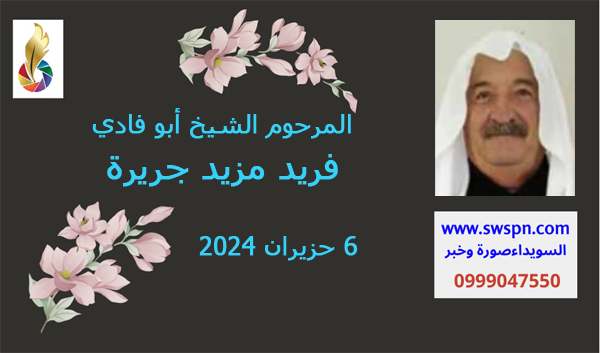 وفاة المرحوم فريد مزيد جريرة ـ السويداء صورة وخبر ـ أخبار الوفيات في محافظة السويداء والمهجر