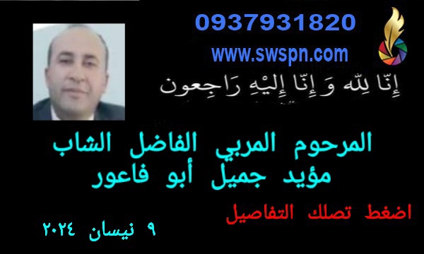 بالرضى والتسليم لقضاء الله وقدره، مديرية التربية ونقابة المعلمين في السويداء، أهالي قرية نمره وآل أبو فاعور، وأقاربهم في جبل العرب والمهجر، ينعون إليكم وفاة المرحوم المربي الفاضل الشاب مؤيد جميل أبو فاعور، له الرحمة ولكم من بعده حسن البقاء.